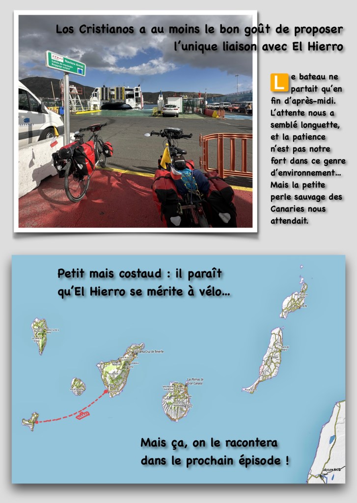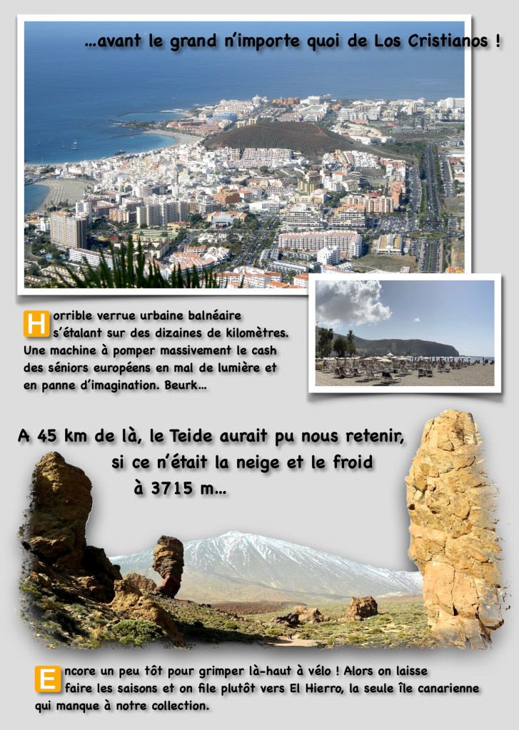 1. Los Cristianos, c’était déjà pas triste en 1990 lorsqu’on y avait fait escale avec notre bateau ! Et en 2007 cela ne s’était pas amélioré, alors en 2023, avec le développement des vols low-cost, j’imagine l’enfer…!