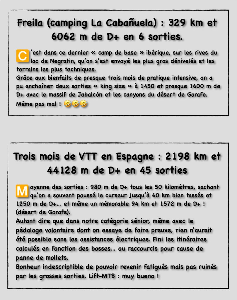 2 réflexions sur « 3 / VTT AE / Hiver et printemps 2024 / Retour chez les Ibères »